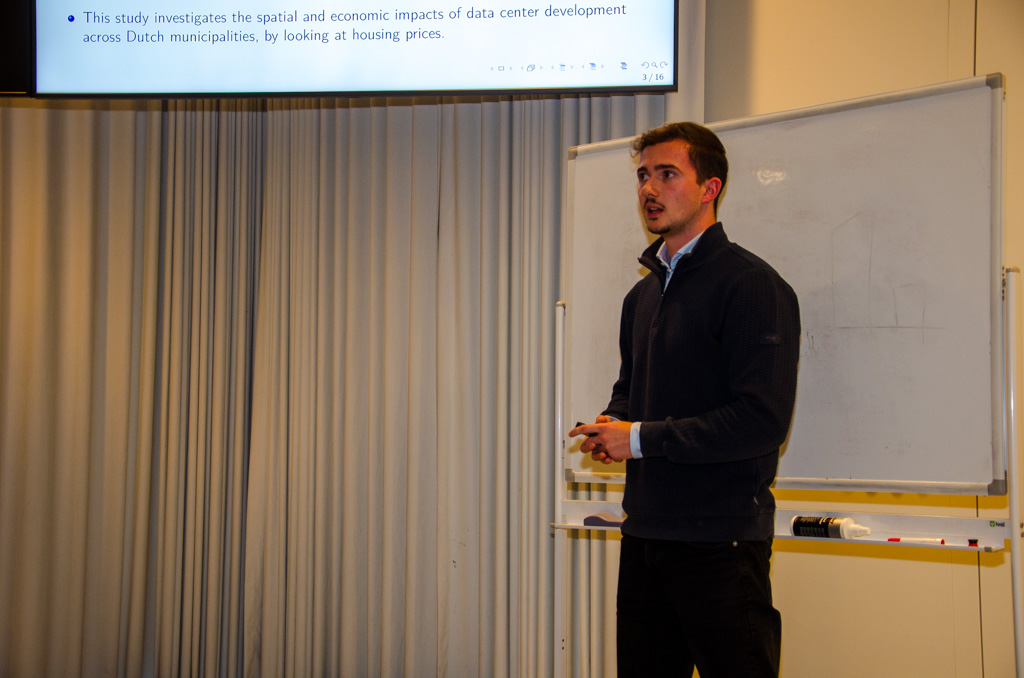 Tijdens het VOGON-Talentseminar op 31 oktober bij de Amsterdam School of Real Estate presenteerde Casper Klipp de resultaten van zijn bachelorscriptie Economie aan de Vrije Universiteit. Zijn onderzoek, dat nog in ontwikkeling is, richt zich op de impact van datacenters op woningprijzen in Nederland.