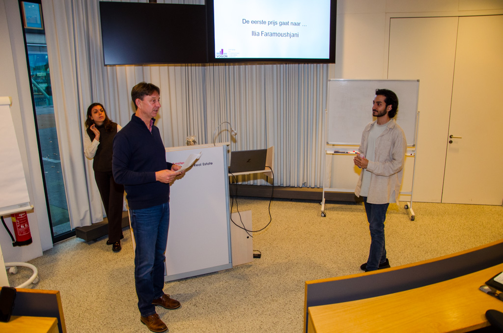 Tijdens het VOGON-talentseminar op 31 oktober, georganiseerd bij de Amsterdam School of Real Estate, maakte juryvoorzitter Matthieu Zuidema de drie prijswinnaars bekend. Zijn oordeel was helder: “Alle scripties die hier zijn gepresenteerd, hebben laten zien dat jonge onderzoekers zich niet alleen inhoudelijk verdiepen, maar ook maatschappelijk betrokken zijn.”